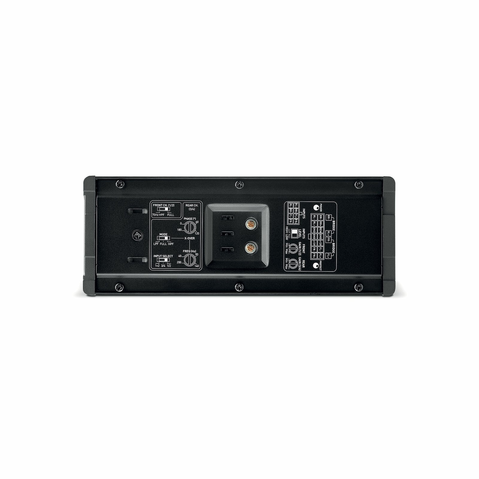 - Power output: 4 x 55W RMS / 2 x 160W bridged