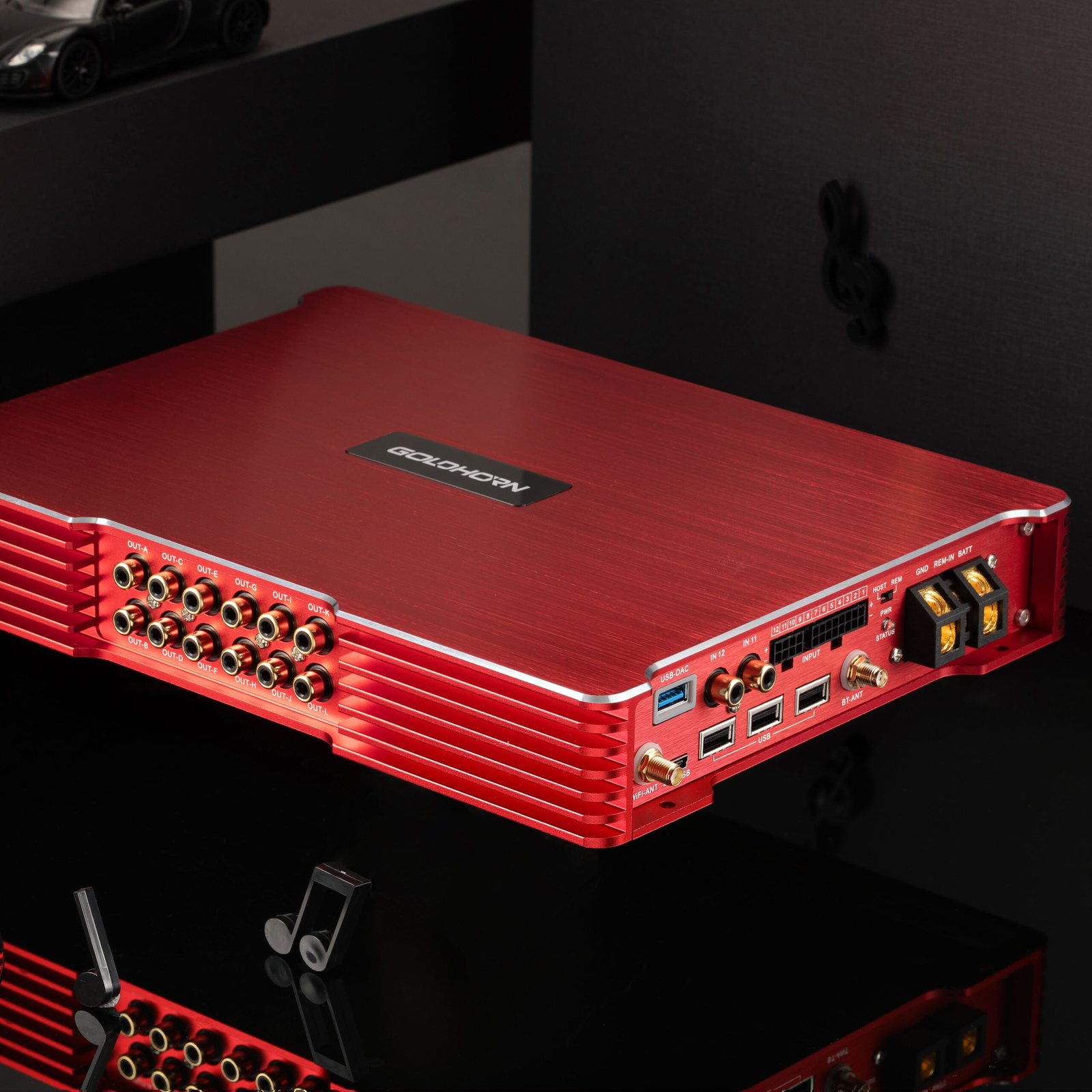 Experience immersive car audio with the Goldhorn P3 DSPA Plus – a powerful 20-channel DSP amplifier featuring a 10-channel Class D amp, advanced 31-band DSP, and high-resolution audio playback.